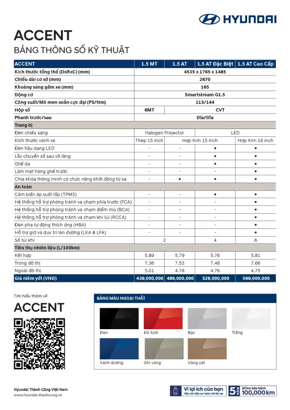 | Giá xe Hyundai Accent 1.5 MT | 439.000.000 VND |
